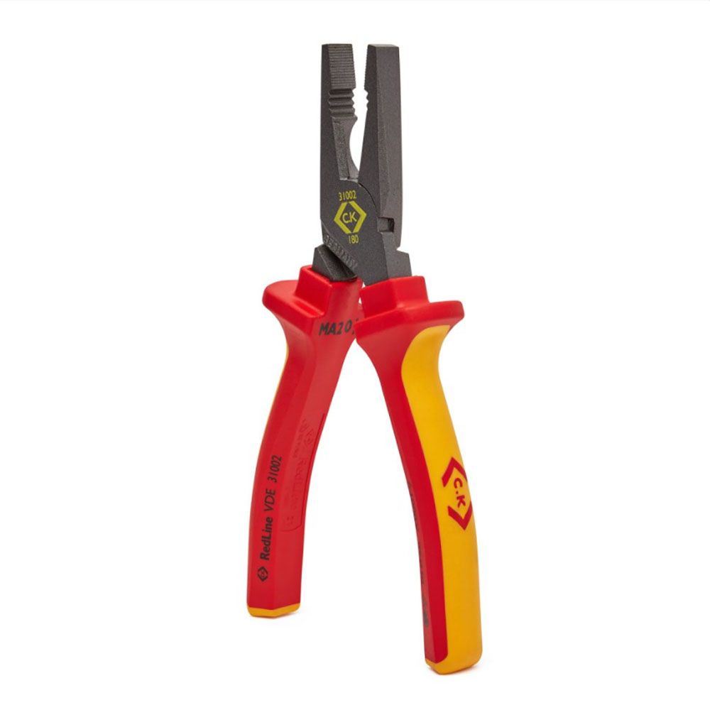 he CK 431003 Redline VDE 1,000v Combination Pliers 205mm is manufactured from a steel alloy and induction hardened for strength in the jaws and hinge, maximising their durability.