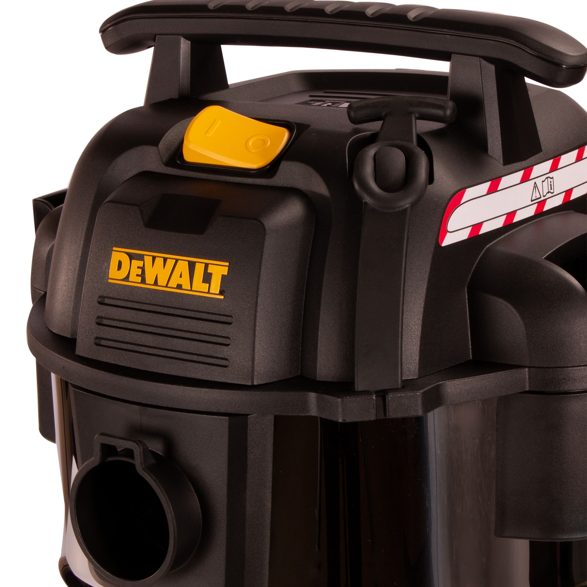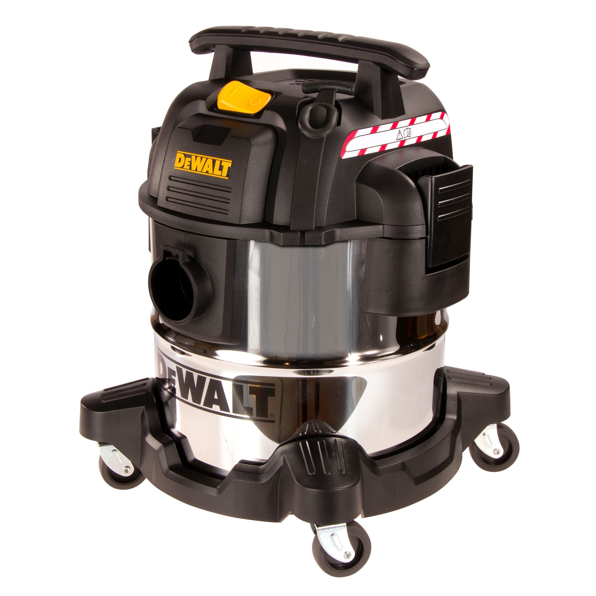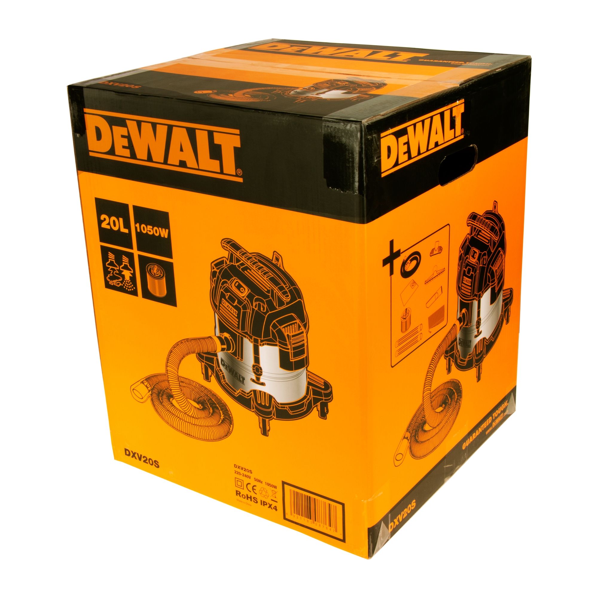 The DeWalt DXV20S Professional Wet & Dry 20L Vacuum Cleaner 240v has a powerful 1050w suction & blower motor + is compact in a heavy duty stainless steel casing.