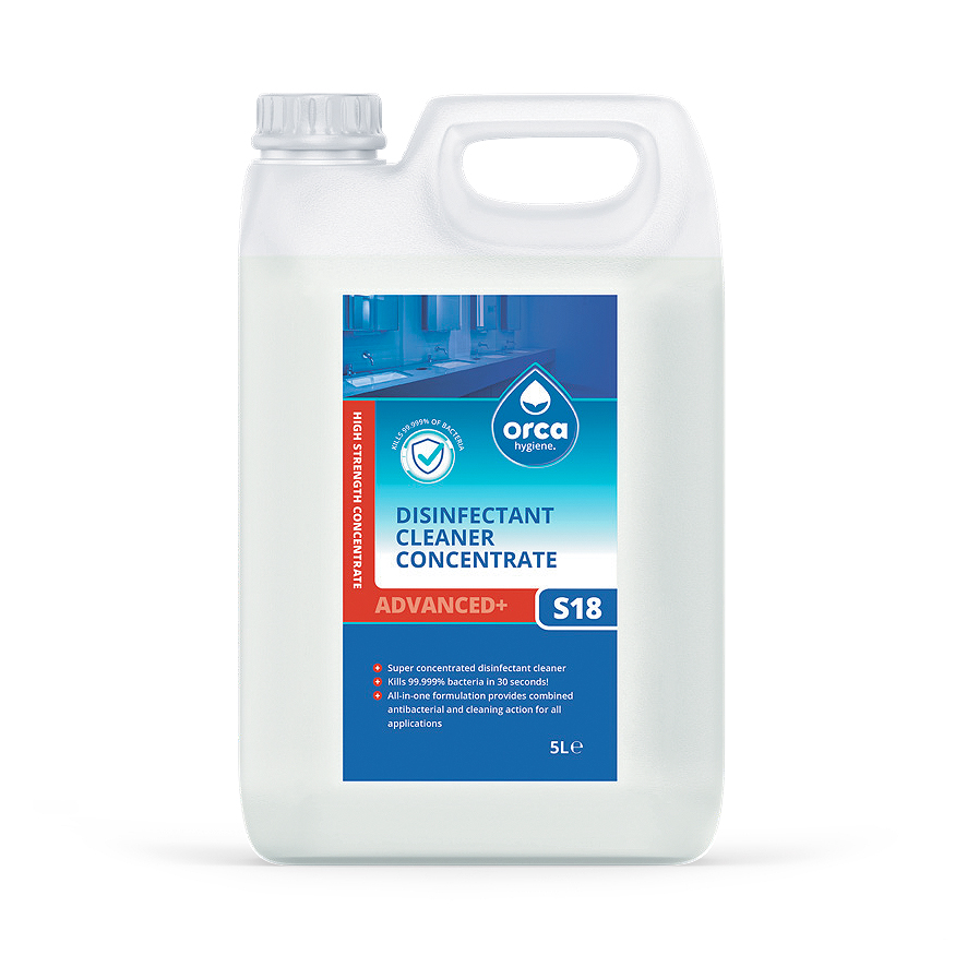 The Orca S18 Advanced+ Disinfectant Concentrate is a high-strength solution with excellent germ-killing efficacy.