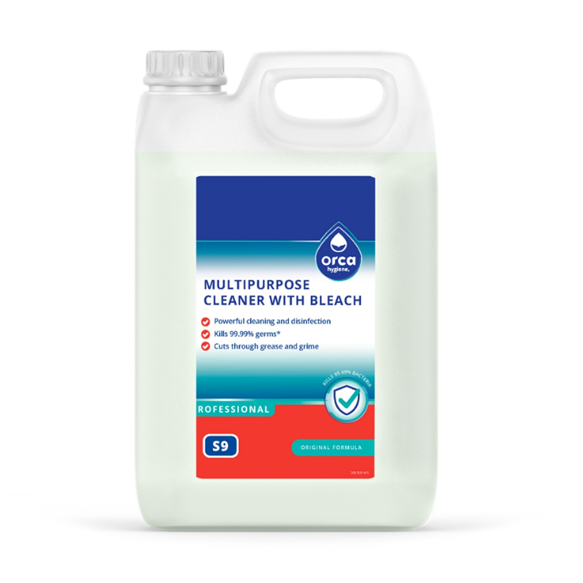 The Orca S9 Multipurpose Cleaner With Bleach boasts a highly effective concentrated formula for powerful cleaning and disinfecting action.