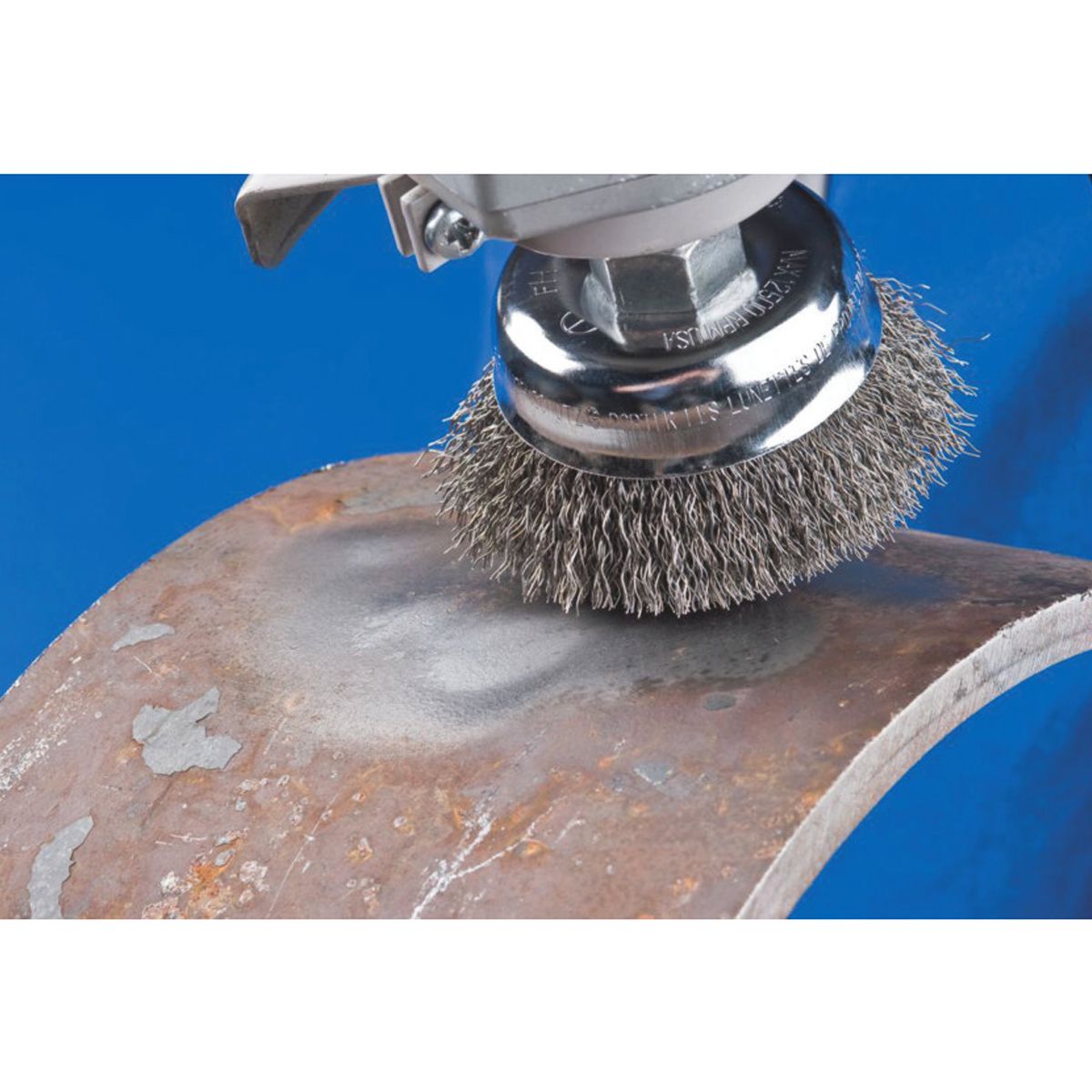Suitable for variety of applications, including paint stripping and oxide layer removal, the Pferd 43469102 Steel Wire Crimped Cup Brush offers a high performance, robust solution for professionals.