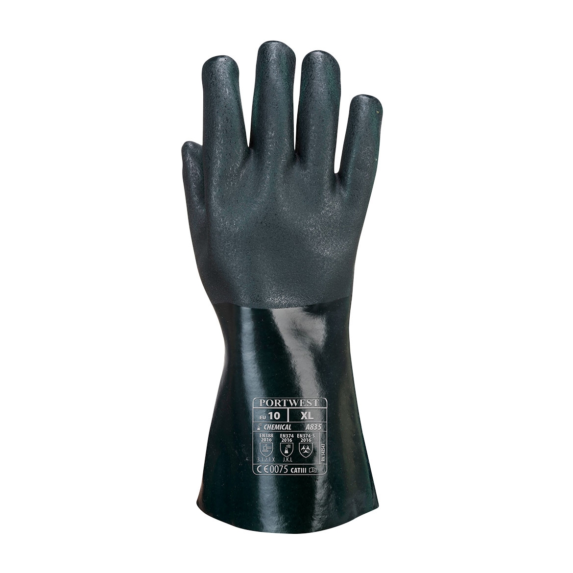 The Portwest A835 Double Dipped PVC Gauntlets have been tested and certified to provide excellent chemical resistance.