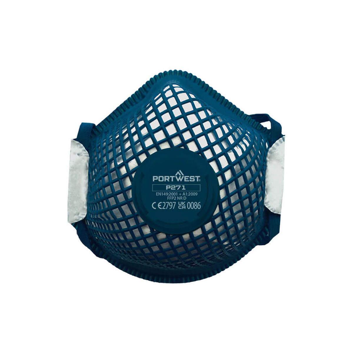 The Portwest P271 Ergonet FFP2 Valved Dolomite Respirator, available in packs of 10, combines ergonomic design with efficient protection, meeting the EN 149 FFP2 (NR D) standard.