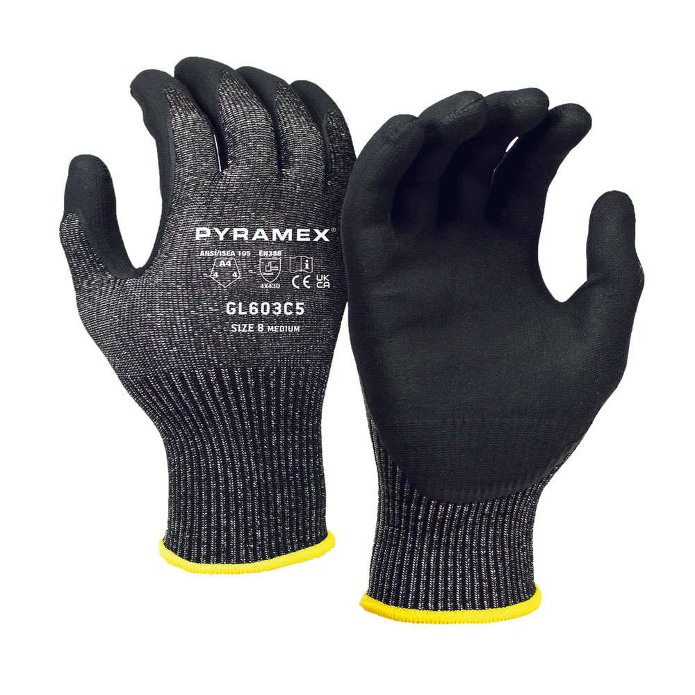 The Pyramex GL603C5 Nitrile Micro-Foam Dipped Palm Coated Gloves combine high-level cut protection with comfort and dexterity, making them ideal for demanding industrial and assembly tasks.