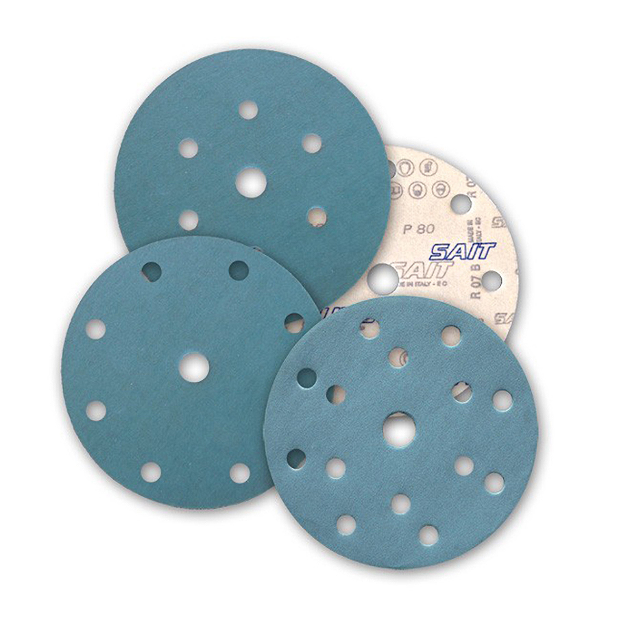 The Sait 091086 are hook & loop backed sanding discs with a 127mm diameter and 8-hole design to allow finer dust to escape.