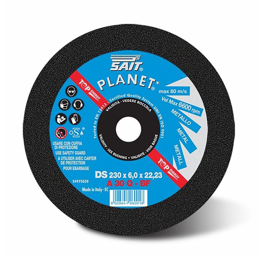 The Sait 006004 PLANET Universal Metal Grinding Disc is a high-quality wheel designed for use with portable machines with applications on steel, cast iron and non-ferrous metals.