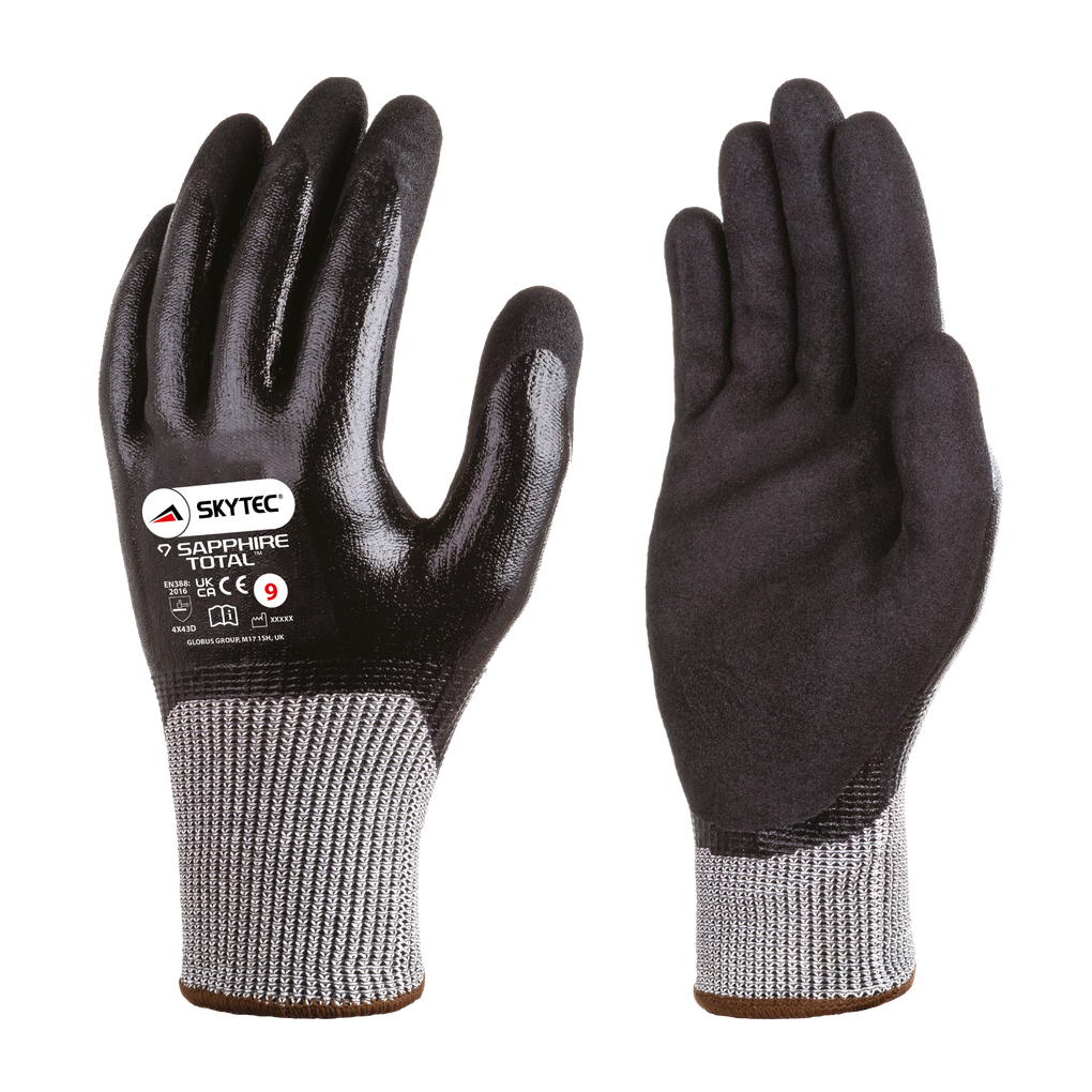 The Skytec SKY0012 Sapphire Total Cut Resistant Nitrile Gloves combine high cut protection with excellent grip in oily and wet conditions.