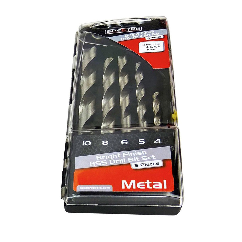 5 x Spectre HSS Metal Drill Bits: 4mm, 5mm, 6mm, 8mm, and 10mm