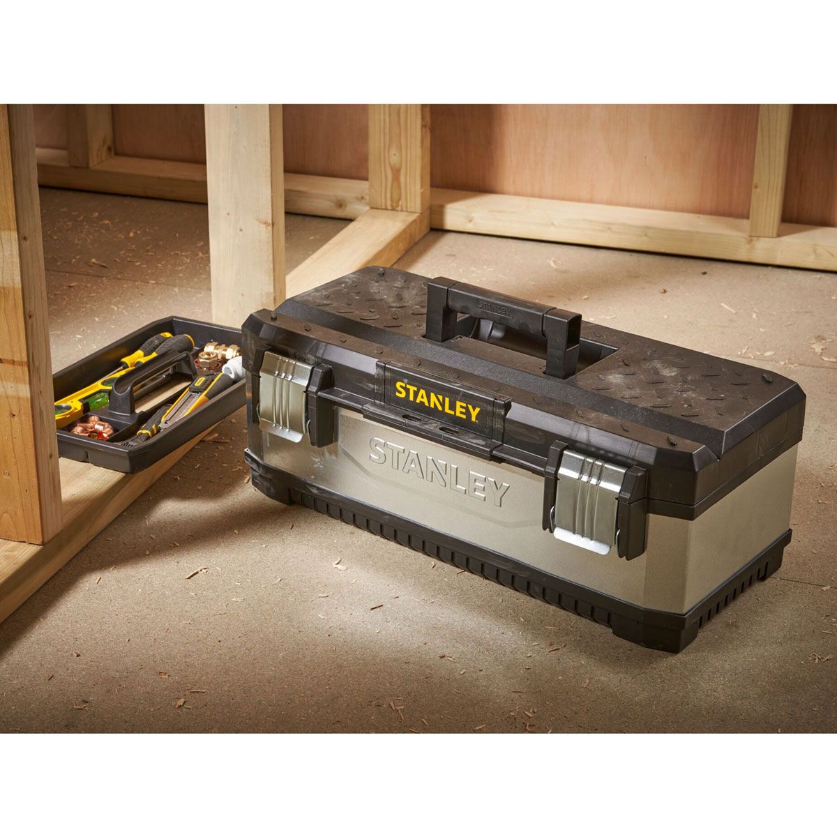 The Stanley 1-95-620 Galvanised Metal Plastic Toolbox 26" is the ideal storage solution for hand tools, small power tools, and parts.