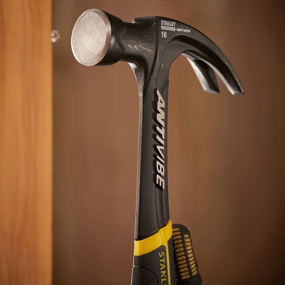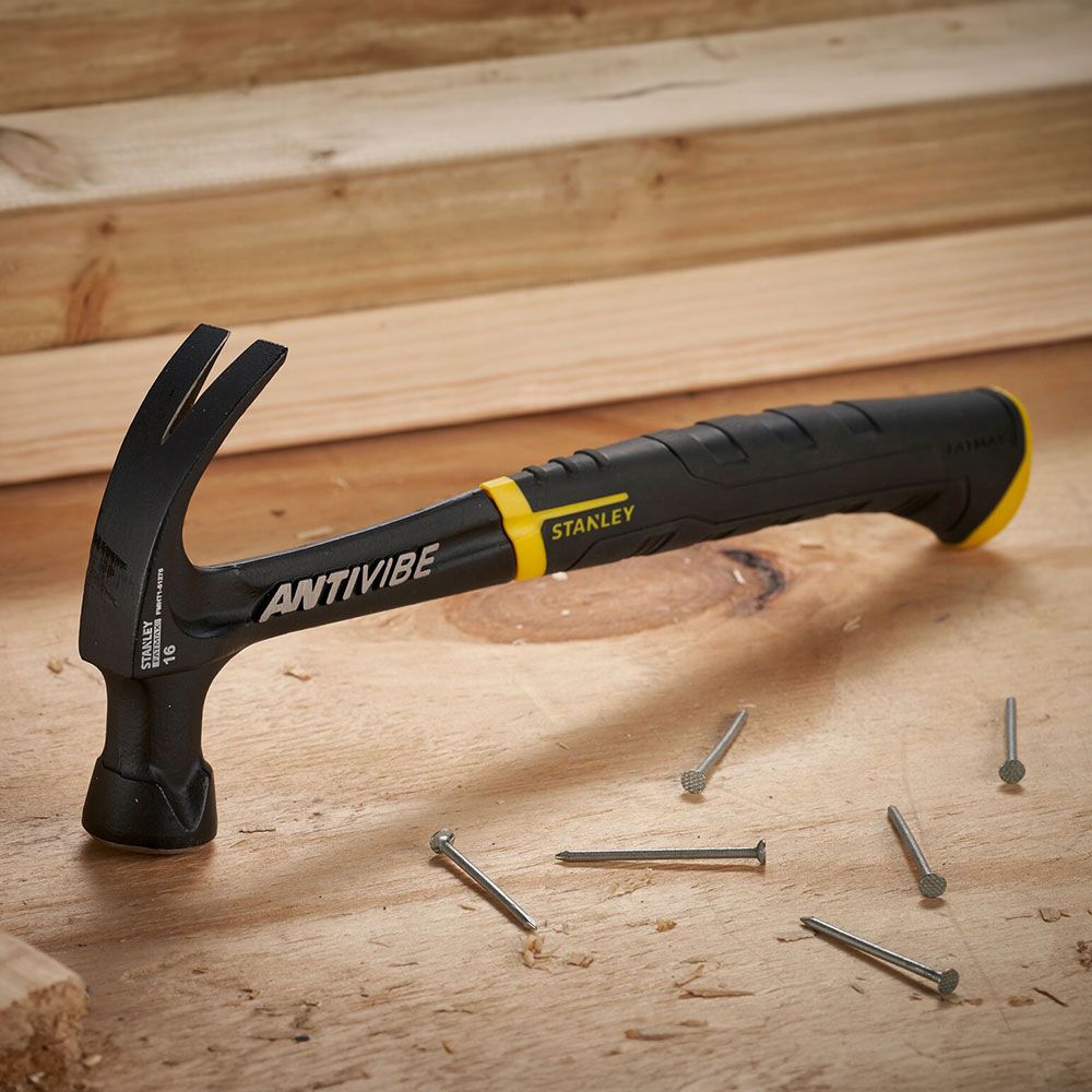 The Stanley FMHT1-51275 FatMax AntiVibe Curve-Claw Steel Hammer 16oz combines durability, balance and comfort in one sleek design.